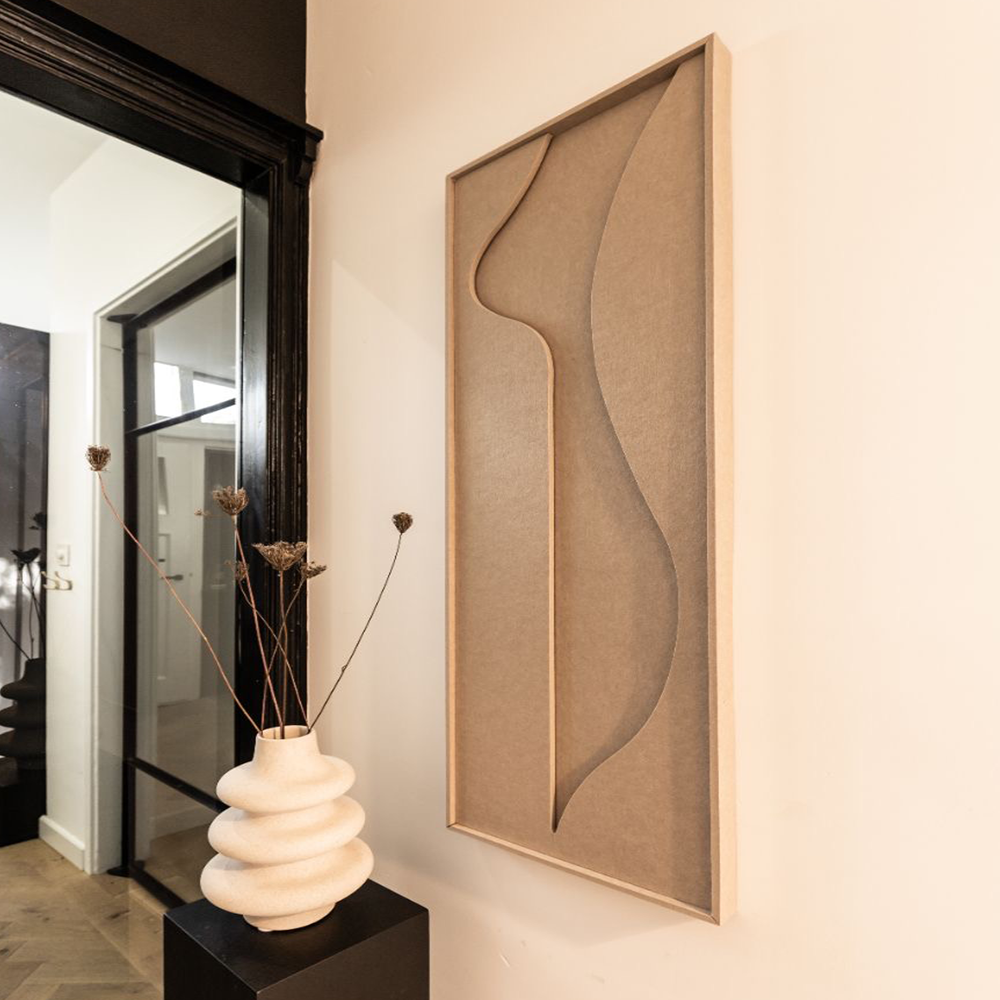 This piece is more than just a decorative object; it's an exploration of form, space, and the dynamic relationship between a single element and its surroundings. "Serpentine Flow" invites the viewer to appreciate the beauty of minimalist design and the subtle nuances of shadow play. Perfect for those seeking a unique and understated artwork, this piece adds a touch of artistic intrigue and contemporary style to any interior. Whether placed in a living room, bedroom, or office, "Serpentine Flow" offers a subtle yet powerful focal point that complements a variety of décor styles. The interplay of light and shadow ensures that the piece changes subtly throughout the day, offering an evolving visual experience. It's a conversation starter, inviting viewers to explore the line and appreciate the harmony of the composition.