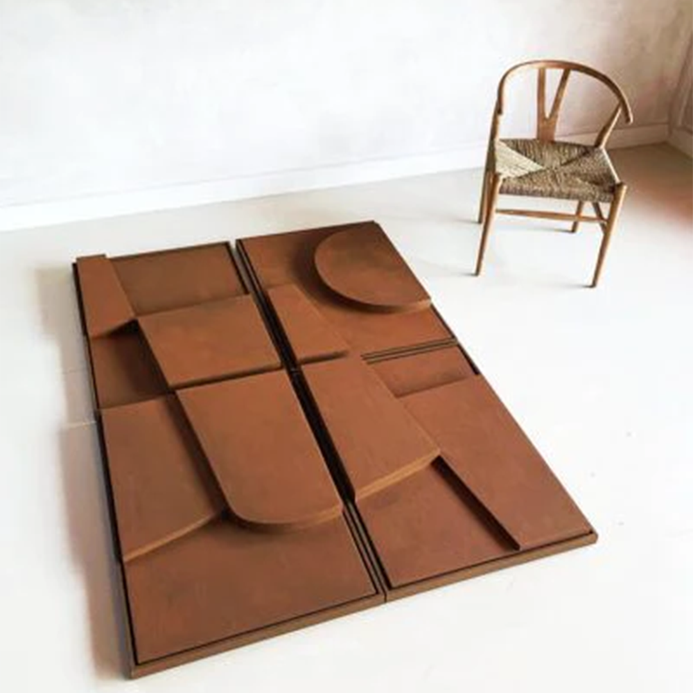 This four-panel set is more than just a decorative object; it's a statement piece that adds a touch of artistic intrigue and contemporary style to any interior. "Tessellated Terrain" is perfect for those seeking a unique and sophisticated artwork that complements a variety of décor styles. Its modular nature allows for flexible arrangement, while its abstract composition encourages personal interpretation. Whether placed in a living room, bedroom, or office, "Tessellated Terrain" offers a compelling focal point that sparks conversation and invites contemplation. The interplay of light and shadow ensures that the piece changes subtly throughout the day, offering an evolving visual experience. It's a testament to the power of simple forms to create complex and captivating compositions.