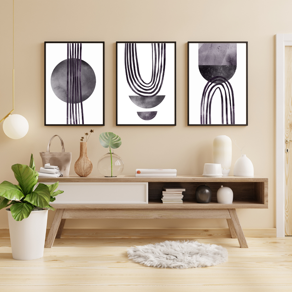 This triptych canvas print set is more than just a decorative piece; it's a celebration of minimalist design and the evocative power of geometric forms inspired by the cosmos. "Lunar Echoes" invites the viewer to appreciate the subtle variations in the compositions and connect with the artwork's sense of balance, harmony, and celestial mystery. Perfect for those seeking a unique and sophisticated artwork, this piece adds a touch of personality and artistic intrigue to any interior. Whether displayed in a living room, study, or hallway, "Lunar Echoes" offers a compelling focal point that sparks conversation and invites contemplation. The high-quality canvas print ensures that the artwork remains vibrant and impactful for years to come. It's a testament to the enduring power of art to capture the essence of modern beauty and bring a touch of sophistication to our lives.