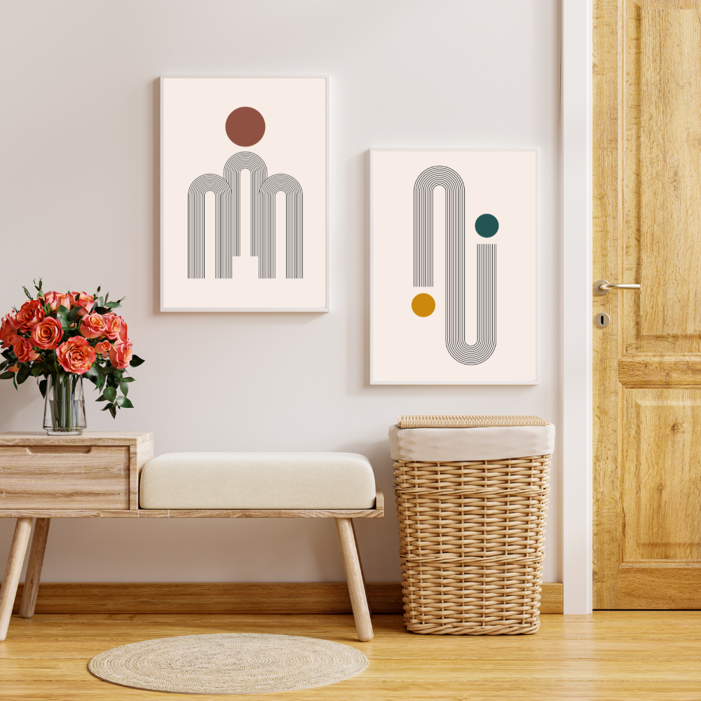 These prints are more than just decorative pieces; they are a celebration of geometric patterns and the beauty of minimalist design. "Arc & Orb Set" invites the viewer to appreciate the clean lines and balanced compositions, and connect with the artwork's sense of structured elegance and artistic expression. Perfect for those seeking a unique and evocative art set, this duo adds a touch of personality and artistic intrigue to any interior. Whether displayed side-by-side or in separate areas of a room, "Arc & Orb Set" creates a compelling focal point that sparks conversation and invites contemplation. The high-quality prints ensure that the artwork remains a cherished set for years to come. It's a testament to the enduring power of art to capture the essence of geometric beauty and bring a touch of modern elegance to our lives.