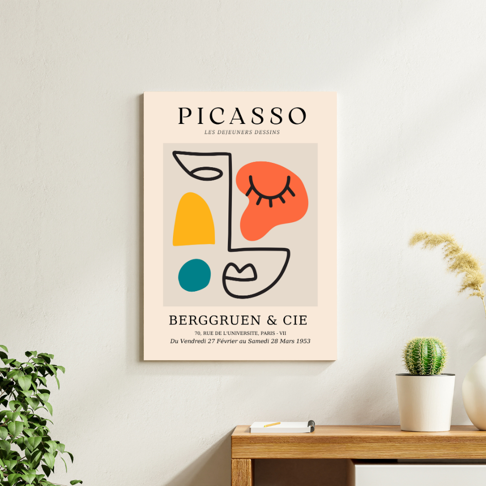 Infuse your living space with a compelling blend of abstract artistry and evocative simplicity with our Aspect wall art. This captivating piece features a bold, minimalist line drawing that masterfully delineates a stylized face, characteristic of a celebrated artistic movement. The fluid lines articulate essential features, while distinct, organic shapes are thoughtfully integrated into the composition, enhancing its abstract narrative and adding visual intrigue. The overall design creates a sophisticated visual dialogue, inviting contemplation on form and perception.