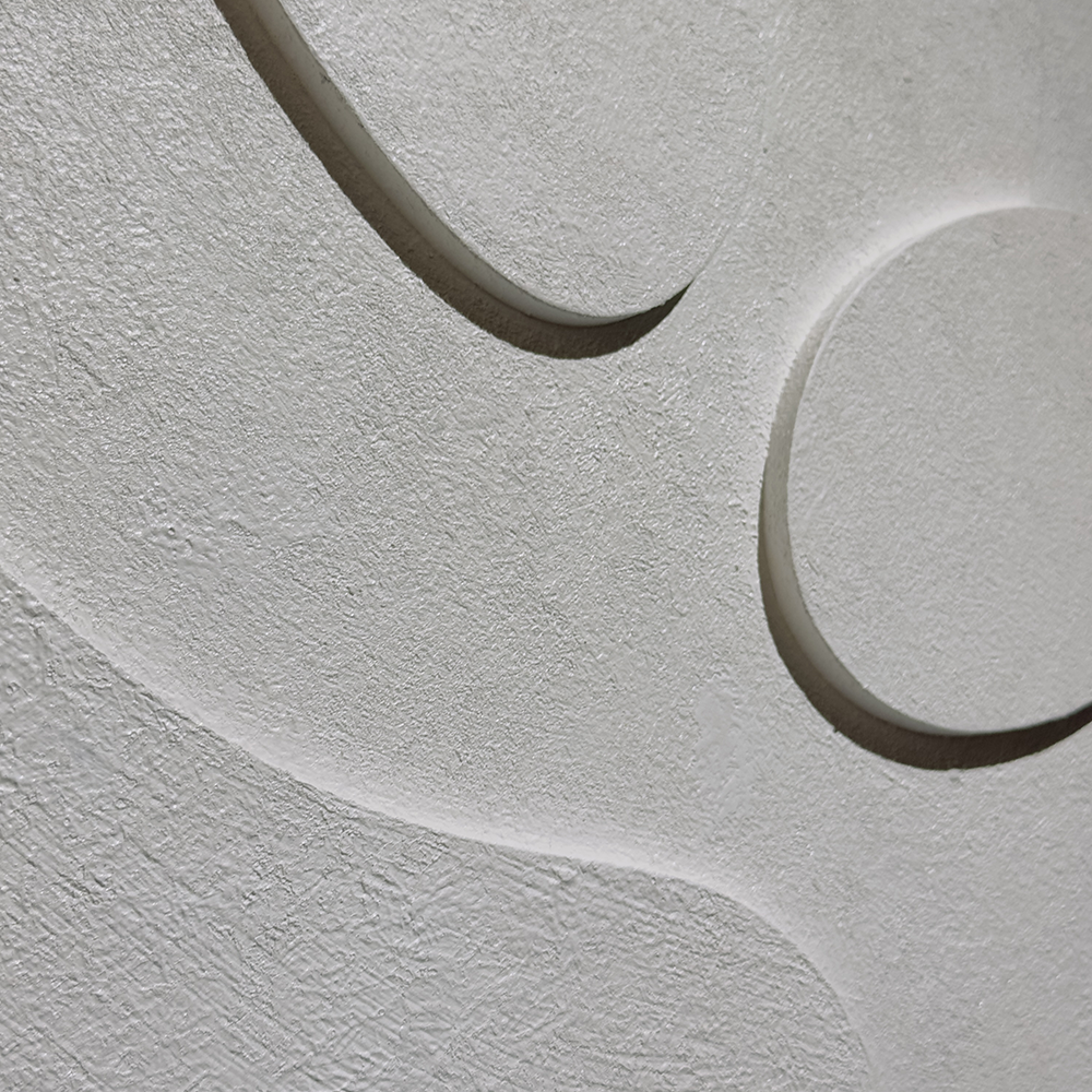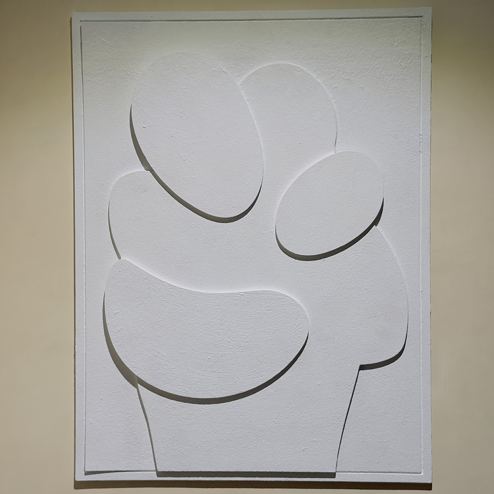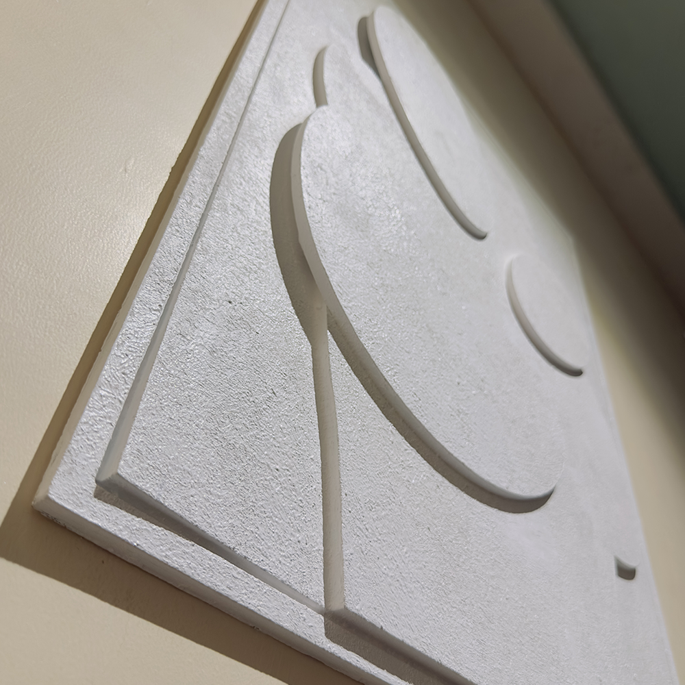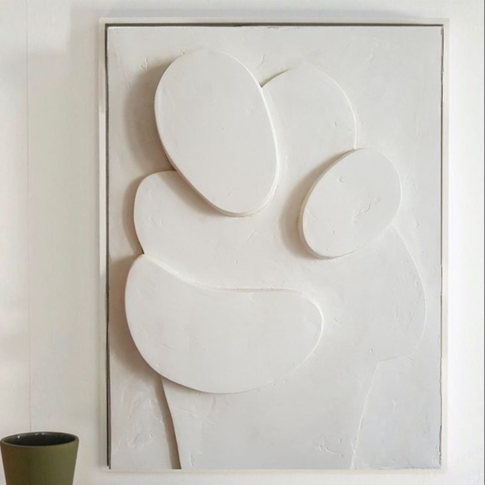 "Embrace" is a captivating wall art piece that expresses the beauty of simplicity and tactile form. The artwork features a cluster of smooth, organic shapes in relief, their rounded forms suggesting a sense of gentle embrace and connection. The raised elements create subtle shadows and textures that play across the surface, adding depth and visual interest to the composition. The design is minimalist yet evocative, inviting viewers to interpret the shapes and connect with the feelings of comfort and warmth they inspire. Imagine the shapes as overlapping stones, worn smooth by time and the elements, or as abstract representations of figures nestled together.