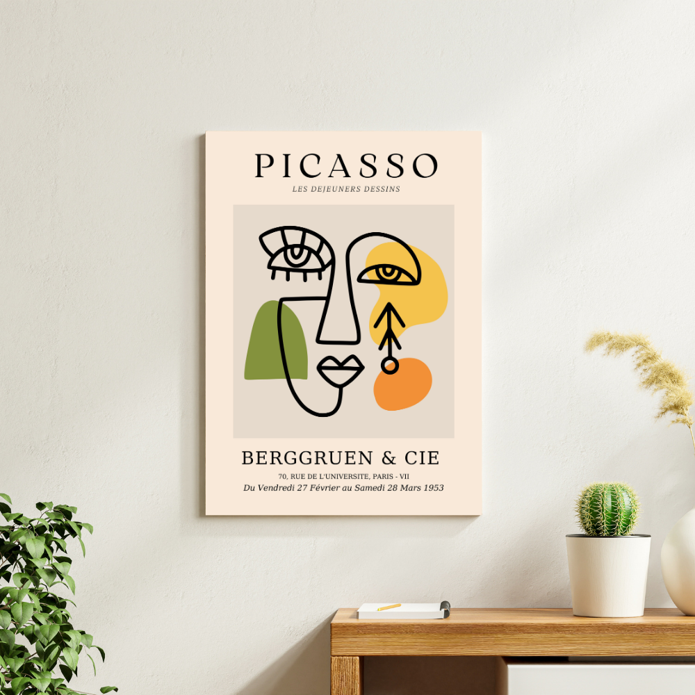 Introduce a captivating sense of abstract depth and artistic insight to your living space with our Perception wall art. This compelling piece features a bold, continuous line drawing that fluidly outlines a stylized face, reminiscent of a master's iconic approach to portraiture. The design captures a unique perspective, with the line gracefully flowing to create an expressive silhouette, accentuated by distinct, organic shapes that add a thoughtful and intriguing dimension to the composition. The overall effect is one of intellectual curiosity and captivating visual harmony, inviting a deeper look into its abstract narrative.