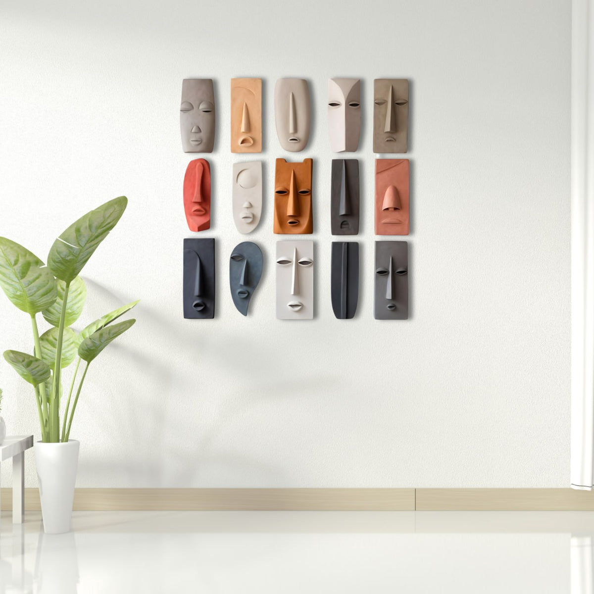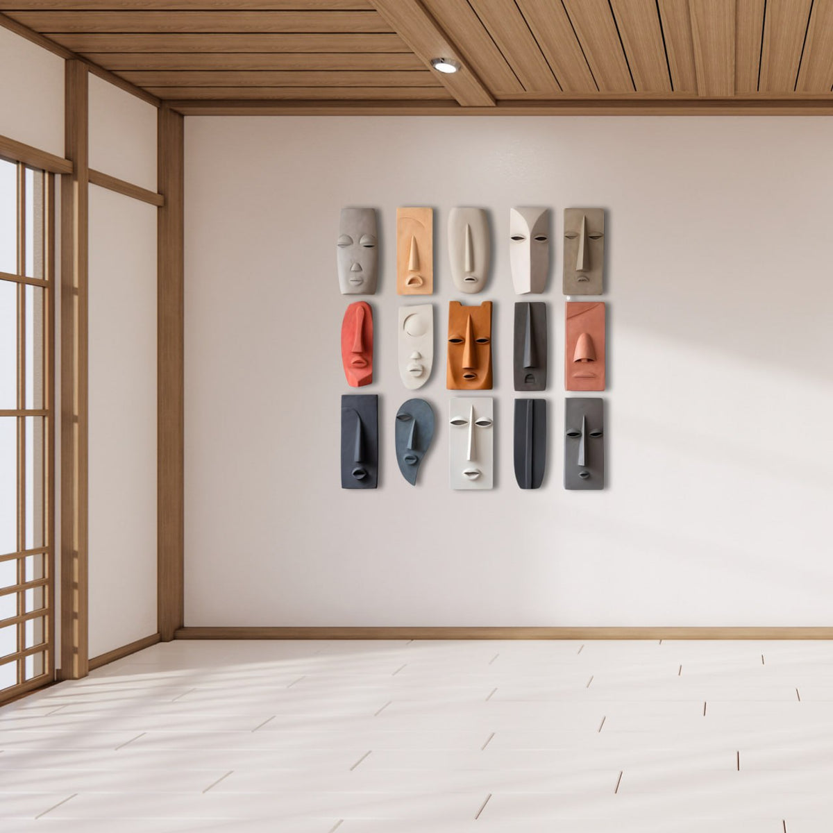 These pieces are more than just decorative objects; they are a study in form and expression. "Persona Panels" invites the viewer to contemplate the essence of human identity and the power of minimalist art to convey complex emotions. Perfect for those seeking a unique and thought-provoking artwork, this collection adds a touch of artistic intrigue and contemporary style to any interior. Whether placed in a living room, bedroom, or office, "Persona Panels" offers a compelling focal point that sparks conversation and invites contemplation. The interplay of light and shadow enhances the three-dimensional quality of the sculptures, ensuring that the display changes subtly throughout the day, offering an evolving visual experience. It's a testament to the ability of simple forms to create powerful and evocative works of art.