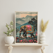 "Procession of Grandeur" is a captivating canvas print that celebrates the majestic beauty of elephants and the richness of cultural traditions. The artwork showcases an elephant, adorned in elaborate decorations and finery, gracefully walking amidst a serene landscape. The intricate details of the elephant's adornments, from the patterns on its cloth to the texture of its tusks, create a visually captivating image. The surrounding landscape, with its rolling hills or lush vegetation, adds a touch of natural beauty and tranquility to the scene. The composition is both grand and elegant, evoking a sense of reverence and cultural richness. This piece is perfect for adding a touch of majestic beauty and cultural inspiration to a living room, study, or any space that could benefit from a bit of worldly charm. The artwork's timeless aesthetic complements a variety of interior décor styles.