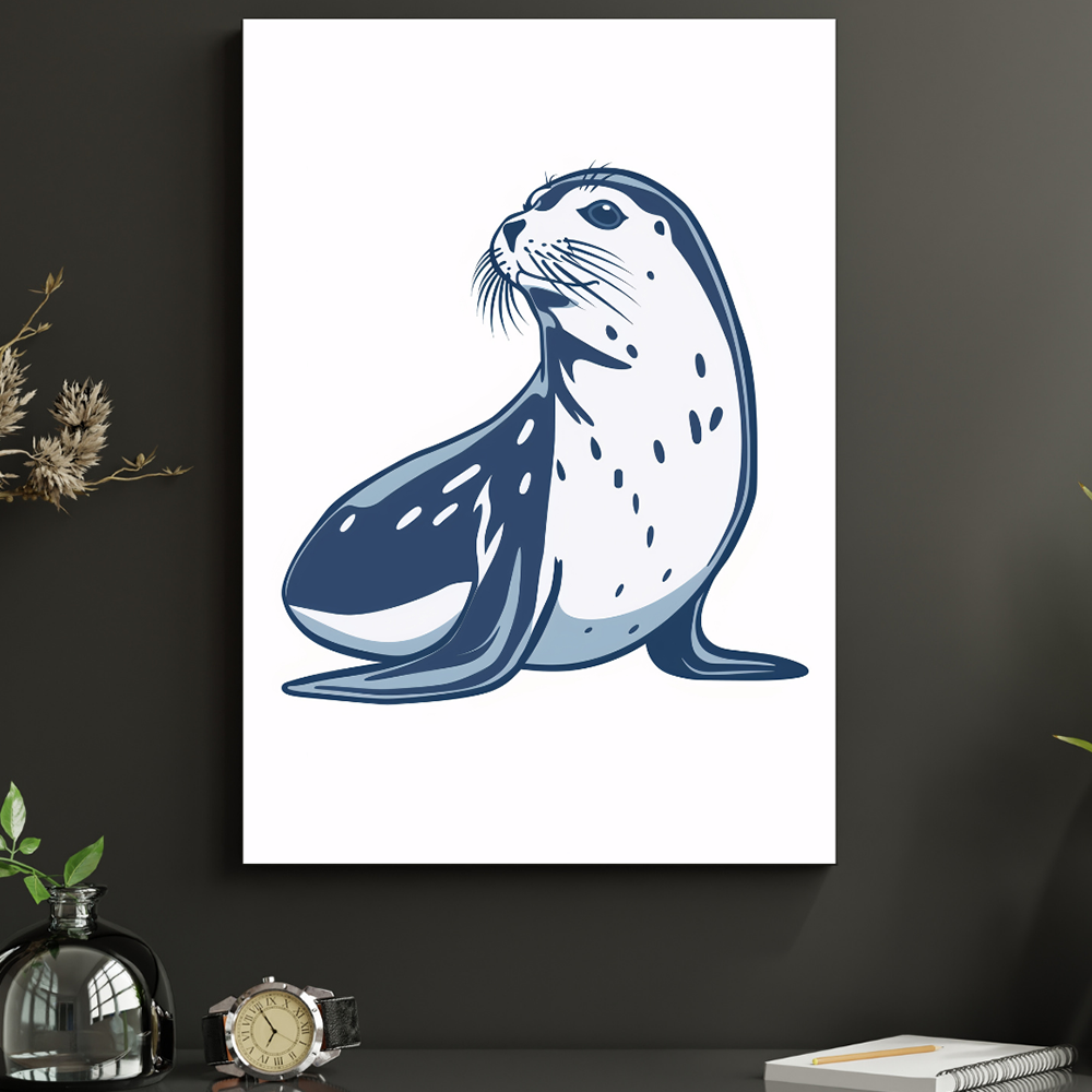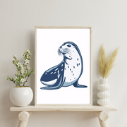 "Seaside Serenity" is a visually calming print that captures the gentle essence of a seal through a minimalist and elegant artistic lens. The artwork features a stylized seal, rendered with clean lines and a simplified form. The artist's use of subtle shading and smooth shapes creates a sense of contemporary sophistication, while the natural subject matter evokes a feeling of tranquility and coastal beauty. The seal's calm pose and gentle expression add a touch of personality and natural charm to the composition. The composition is thoughtfully arranged, with the seal positioned as the central focus, creating a visually engaging and serene scene. This piece is perfect for adding a touch of coastal charm and minimalist elegance to a living room, bedroom, bathroom, or any space that could benefit from a bit of artistic expression and nature-inspired simplicity. The artwork's minimalist aesthetic complements a variety of interior décor styles, particularly those with a modern, Scandinavian, or coastal vibe.