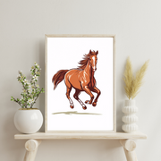 "Stride of Spirit" is a visually compelling print that captures the power and grace of a galloping horse. The artwork features a stylized rendering of the horse, emphasizing its muscular form and flowing mane and tail. The artist's use of bold lines and dynamic composition conveys a sense of movement and energy, bringing the horse to life on the canvas. The horse's expressive face and forward-leaning posture add a touch of personality and equestrian charm to the composition. The composition is thoughtfully arranged, with the horse positioned as the central focus, creating a visually engaging and spirited scene. This piece is perfect for adding a touch of dynamic energy and equestrian inspiration to a living room, bedroom, study, or any space that could benefit from a bit of artistic expression and equine charm. The artwork's stylized aesthetic complements a variety of interior décor styles, particularly those with a modern, classic, or eclectic vibe.